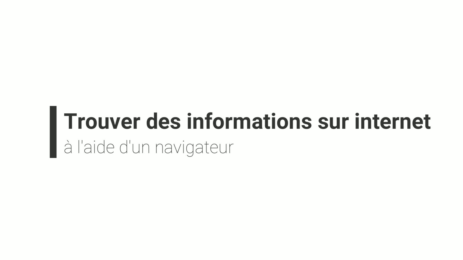 Cette vidéo/tutoriel, définit et montre les étapes d'une recherche sur internet pour préparer des travaux et des exposés dans le cadre scolaire. (Destinée à des élèves du secondaire 1).
