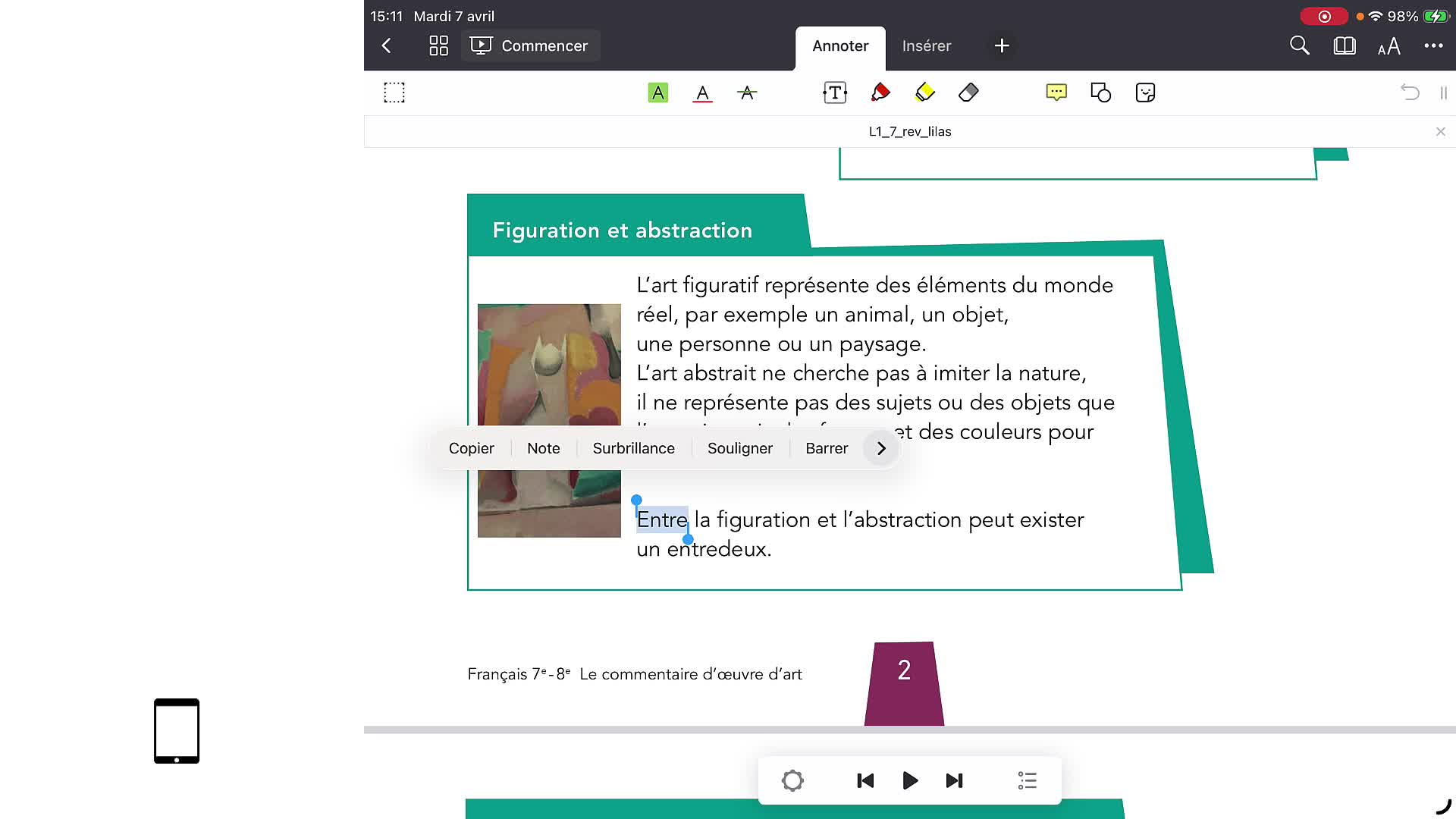 La synthèse vocale permet d’écouter le texte d’un fichier PDF. Pour cela, il faut que le PDF ait reconnu optiquement les caractères. L’acronyme utilisé en anglais est OCR. PDF Expert utilise sa propre synthèse vocale sur iPadOS. Malheureusement, seule une voix d’une seule langue peut être sélectionnée. Ceci demande des réglages fréquents avec des documents plurilingues.