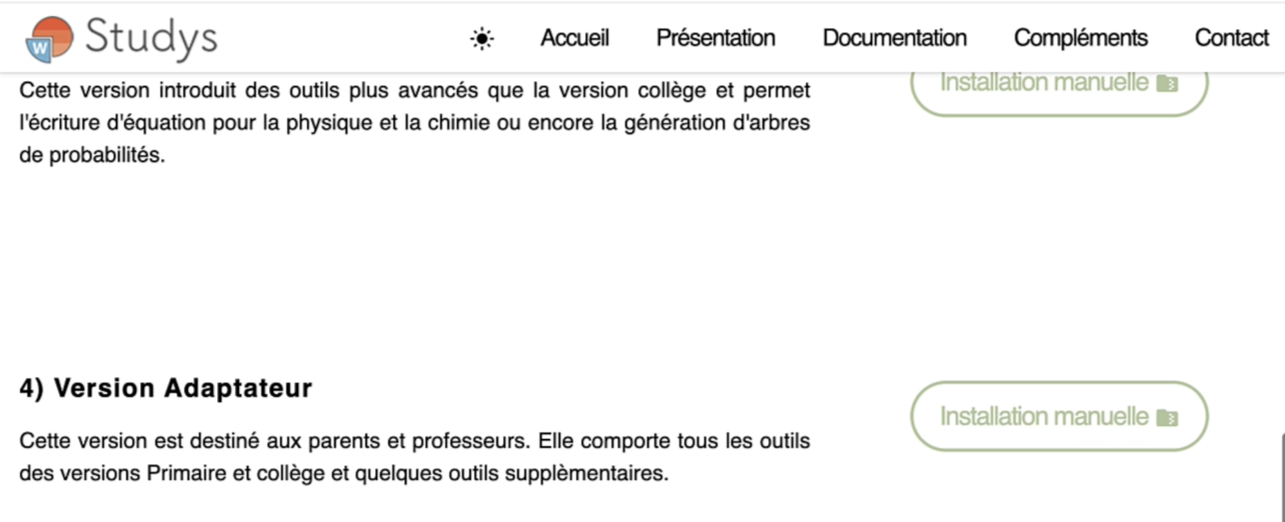 Il y a deux manière d'installer Studys : par défaut ou comme modèle. La procédure d'installation est technique. Ce module, une fois installé, permet aux enseignants de créer des fiches accessibles en quelques de clics. Attention : fonctionne seulement avec une version payante de Microsoft Word.