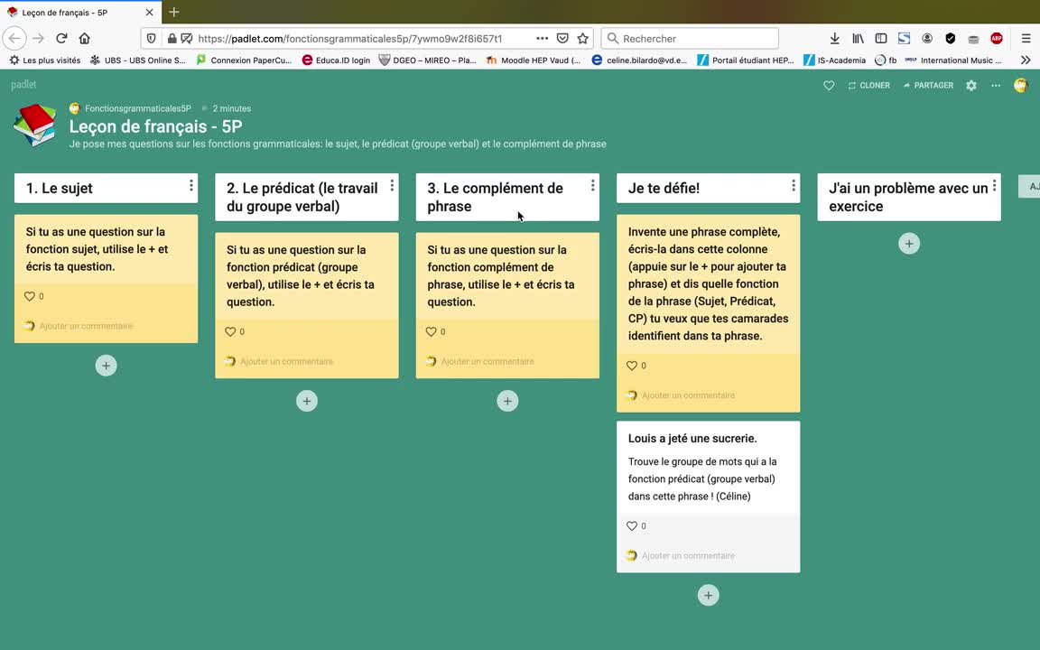 Fonctions grammaticales: Tuto Padlet