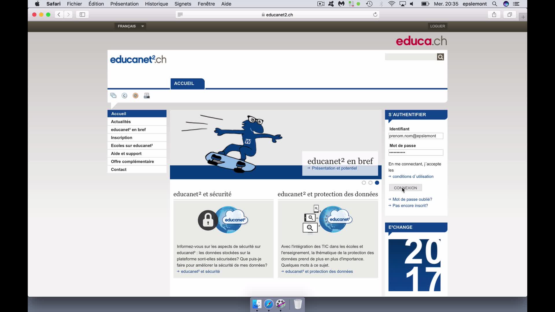 Dans un navigateur Internet tel que Safari, se connecter à la messagerie educanet2 afin de consulter des emails reçus.