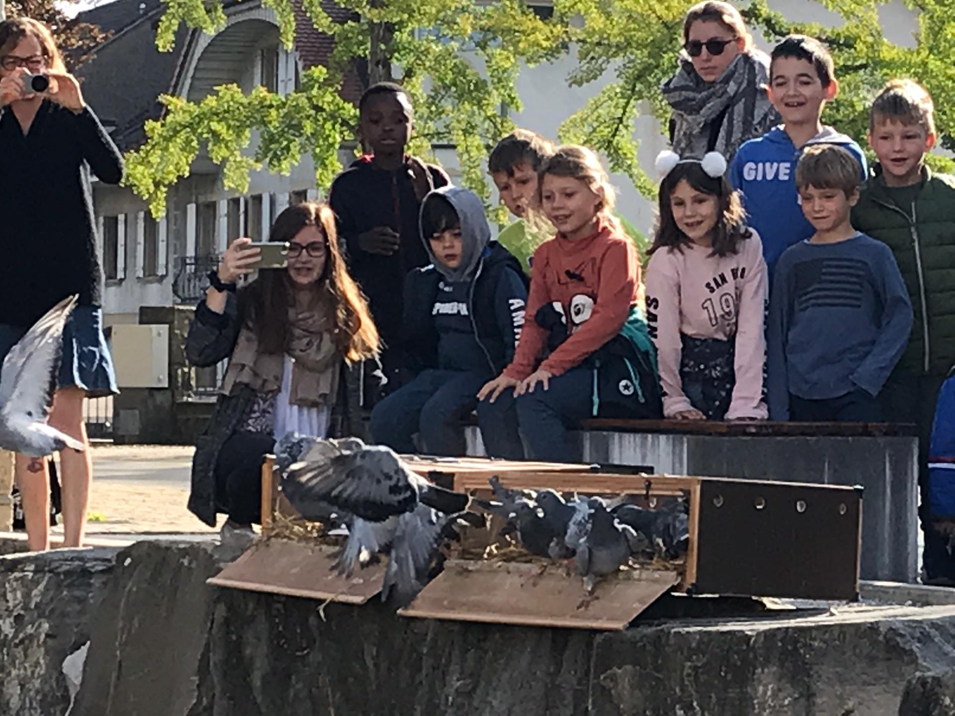 La flamme réceptionnée à Avenches, collège du Château...