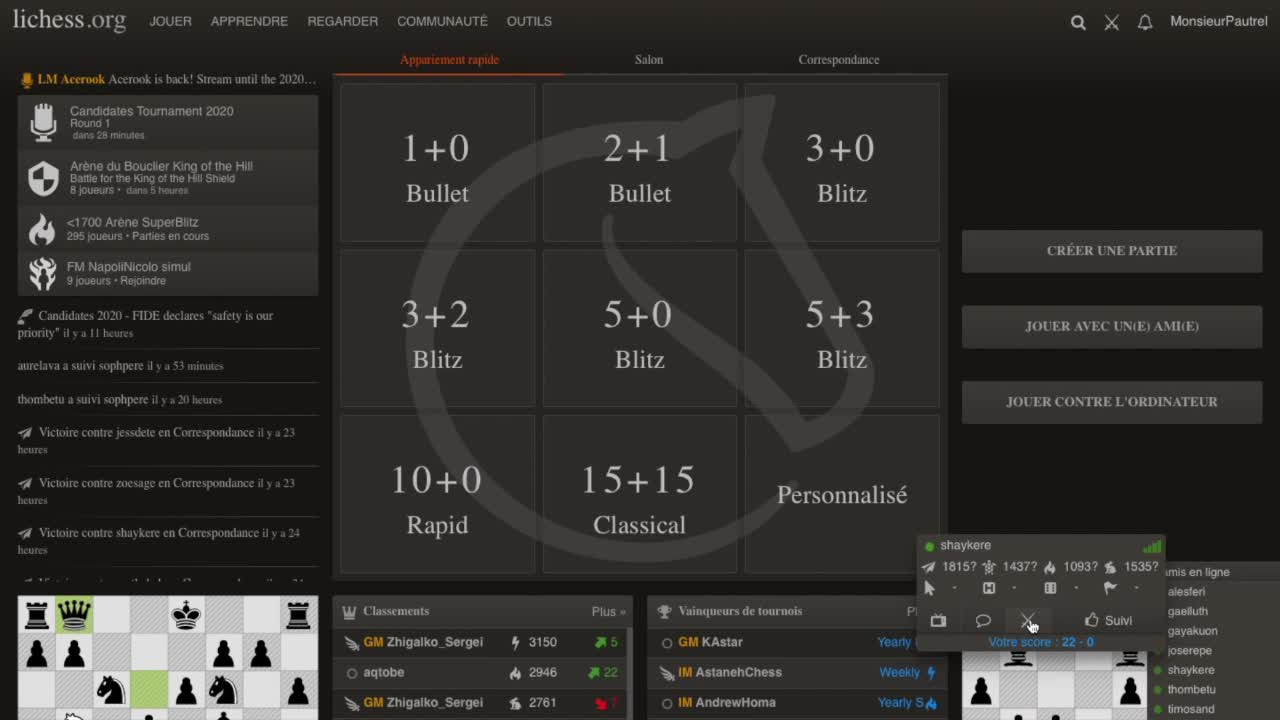 Lancer des défis et participer à des tournois